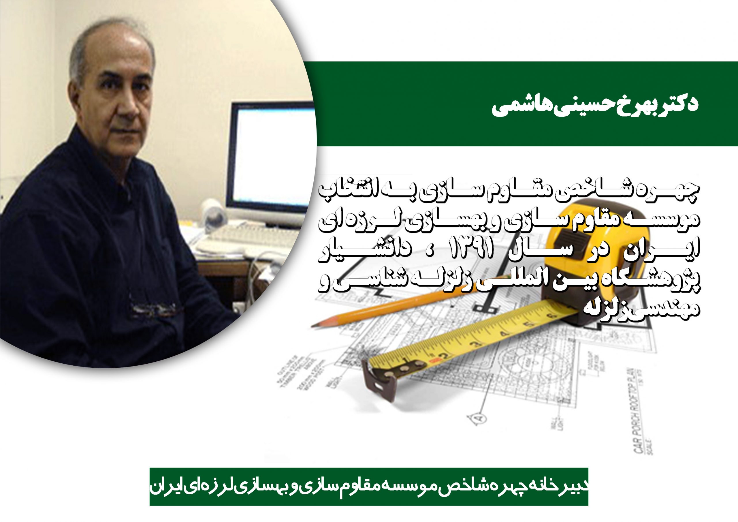 دکتر بهرخ حسینی هاشمی را می توان به عنوان دبیر و مجری بسیاری از آیین نامه های مقاوم سازی معرفی کرد. وی دانشیار پژوهشگاه مهندسی